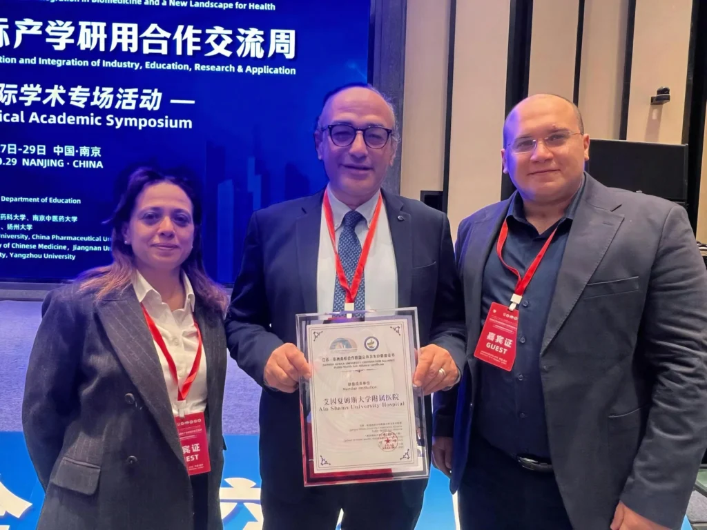 وفي ختام الفعاليات، تسلّم الأستاذ الدكتور طارق يوسف شهادة مشاركة رسمية، تؤكد انضمام مستشفيات جامعة عين شمس إلى رابطة التعاون بين مقاطعة جيانغسو والجامعات الأفريقية في مجال طب الأسرة وصحة المجتمع، لتُصبح بذلك الجامعة المصرية الأولى والوحيدة التي تشارك ضمن هذه الرابطة العلمية المرموقة.